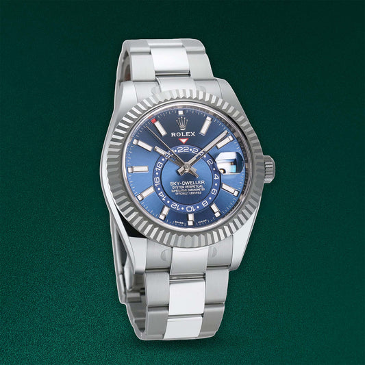 Rolex Sky-Dweller Steel 42mm Blue Dial 18k White Gold Bezel Oyster Bracelet